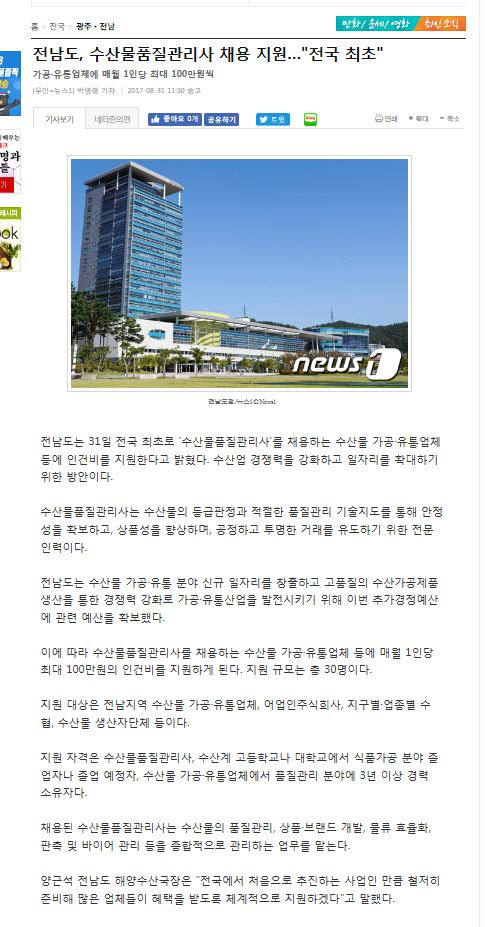 열람중 전남도, 수산물품질관리사 채용 지원…"전국 최초" 교육관리자 2017-12-01 3335
